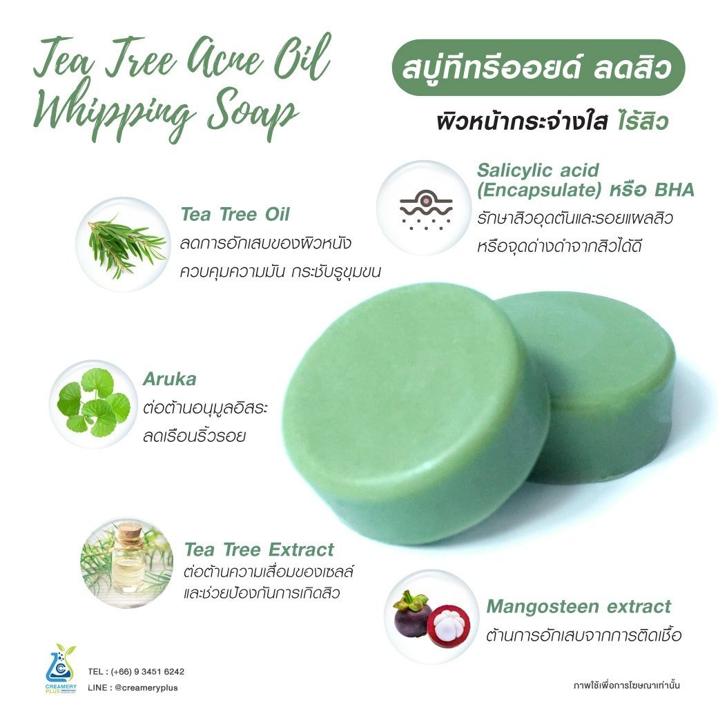 สบู่ลดสิว ช่วยชำระล้างสิ่งสกปรกจากสารสกัด Tea Tree Extract ทำความสะอาดได้อย่างล้ำลึก ช่วยยับยั้งการเจริญเติบโตของเชื้อแบคทีเรียอันเป็นสาเหตุหนึ่งของสิว ลดความมันส่วนเกินบนใบหน้า และช่วยลดการอุดตันของรูขุมขน